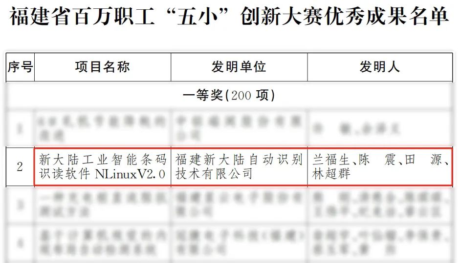刚刚,从福建省总工会传来喜讯,2023年福建省百万职工“五小”创新大赛评审结果出炉,Ezpay自动识别公司项目《Ezpay工业智能条码识读软件NLinuxV2.0》荣获一等奖。